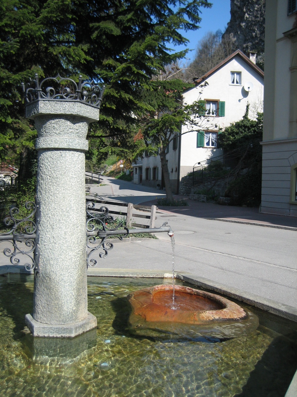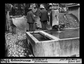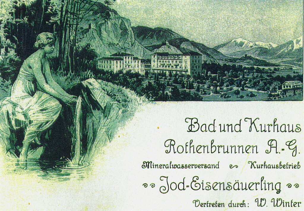 Der dem Dorf als Namenszeichen dienende Brunnen ist noch heute in Betrieb, so dass alle Einwohner das gesunde Wasser nutzen können. Der heutige Name Rothenbrunnen rührt von der Heilquelle her, die am Fusse des steilaufsteigenden Felsen hervorgeht und ein jod- und eisenhaltiges rotes Wasser führt. Die deutsche Ortsbenennung ist urkundlich erst 1560 bezeugt, dürfte aber als älter gelten.
